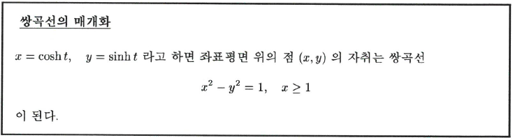 이다. $(sinhx)'>0$이므로 쌍곡사인함수는 순증가함수(strictly increasing function)임을 알 수 있다.