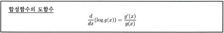 합성함수 $y=logg(x)=f(g(x))$에 대하여 연쇄법칙을 적용하면 $f'(u)=\frac{1}{u}$이므로