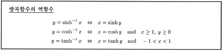 쌍곡사인함수와 쌍곡탄젠트함수는 일대일대응이므로 역함수가 존재한다. 쌍곡사인함수의 역함수와 쌍곡탄젠트함수의 역함수는