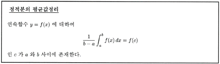 인 $c$가 $a$와 $b$사이에 존재한다. 그런데 $F'(c)=f(c)$이므로 이 결과는 다음과 같이 쓸 수 있다.