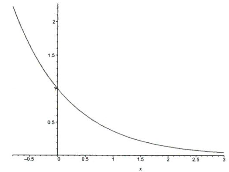 1사분면에서 곡선 $y=e^{-x}$아래 있는 영역을 생각해 보자.