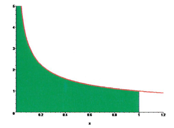이다. $t\rightarrow\infty$ 일 때, $A(t)$의 값은 1로 수렴한다. 따라서 빗금친 부분의 넓이는 1이라고 할 수 있다.