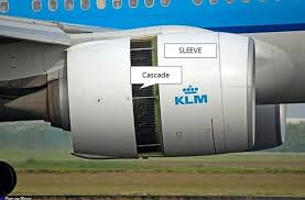 차단문으로 인해 갈 곳 없는 바이패스 에어가 캐스케이드를 통해 빠져나갑니다. 캐스케이드 구멍은 공기가 분사될 방향을 일정하게 만들어 주고 여기서 분사된 공기는 비행기를 진행방향 반대로 밀게 됩니다. 비행기가 역추진을 사용하면 엔진에 검은 부분이 보이는데 이것이 바로 캐스케이드입니다