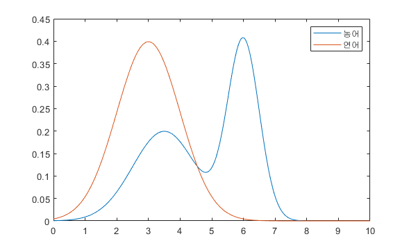 - $P(w_1|x)>P(w_2|x)$라면 농어로 분류한다.