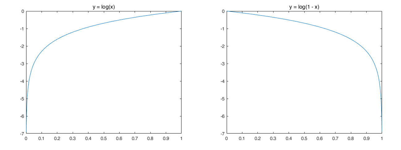 이게 논문에서 나온 식인데, 우리가 위에서 구한 식과의 차이점은 바로 G가 log(1−D(G(z)))를 Minimize 하느냐, log(D(G(z)))를 Maximize하느냐에 있다. 사실 수식상으로는 차이가 있어도, D(G(z))가 0이 아닌 1에 가까워지는 방향을 지향한다는 점에서는 결과적으로 같다. 하지만 이 두 함수의 그래프를 보면 미세한 차이를 알 수 있게 된다.