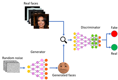 GAN(Generative Adversarial Network)은 Generator와 Discriminator의 경쟁적인 학습을 통해 Data의 Distribution을 추정하는 알고리즘이다. 여기서 Data의 Distribution은 쉽게 말하면 ‘어떻게 생겼는가’를 의미한다. 예를 들어 사람 얼굴 이미지를 생성해 내는 알고리즘은 사람의 얼굴을 그럴듯하게 만들어 내기 위하여 ‘사람의 얼굴이 대충 어떻게 생겼는가’, ‘어떤 식으로 생겨야 사람 얼굴이라고 하는가’를 먼저 학습해야 할 필요가 있다. 이것을 바로 ‘사람 얼굴 이미지의 Distribution’이라고 할 수 있고, GAN은 그 것을 학습한다.
