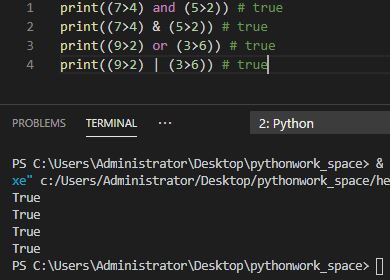 다음은 and와 or에 대해서 간략하게 언급할게요 수학에서 and와 or은 들어 보았을 것입니다. 두 명제가 and로 연결되어 있을 경우 두 명제 모두가 참일 경우만 참으로 인식을 하고 두 명제가 or로 연결되어 있을 경우 두 명제 중 적어도 하나만 참이 된다면 참으로 인식하는 연산자입니다. python에서 and는 and라고 직접 쓰거나 &를 이용해서 표현할 수 있습니다.