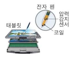 태블릿 컴퓨터는 키보드 대신에 전자펜이나 터치스크린을 사용하는 휴대용 컴퓨터입니다. 전원을 켠 태블릿 검퓨터에는 전류가 흐르고 있어 표면에 자기장을 만들어 줍니다. 사용자가 컴퓨터 가까이에서 전자펜을 움직이면 전자펜 안에 있는 코일에 전류가 흐릅니다. 이 유도 전류에 의해 발생하는 자기장이 태블릿 컴퓨터에 전기 신호를 유도하게 되고 이 신호에 의해 컴퓨터가 작동합니다.