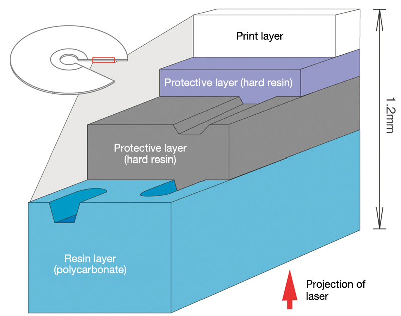 마지막으로 빛을 이용해 저장하는 광 디스크입니다. CD라고 하죠. CD 표면에 홈을 만들어 홈이 파인 부분과 그렇지 않은 평평한 부분들의 조합을 통해 정보를 저장하고 인식합니다. CD는 라벨층, 보호막, 알루미늄 금속박, 플라스틱으로 이루어져 있는데 빛의 반사율 차이를 재생 원리로 합니다. 레이저 빛으로 CD 표면의 염료를 그을려서 어두운 표시를 만드는데 이 부분에 홈이 생깁니다. 어두워진 부분은 0, 밝은 부분은 1에 대응하는 정보를 저장합니다. 추가로 CD와 DVD의 차이는 크게 밀도차이라고 생각하면 됩니다. DVD는 홈의 길이와 간격을 CD보다 작게 해서 보다 많은 정보를 저장할 수 있는 것입니다.