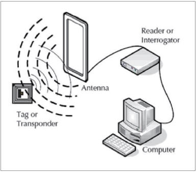 요즘 우리는 스마트카드를 많이 사용하고 있습니다. 기존의 신용카드와 같은 마그네틱 카드보다 더 진보된 카드입니다. 카드 안에 집적 회로를 넣어 대용량의 메모리, 쌍방향 통신, 정보 보호 기능 등이 갖추어져 있습니다. 사람들이 많이 사용하는 교통 카드와 하이패스 카드가 대표적인 예입니다. 이는 RFID라고 기술로 가능합니다. RFID(Radio Frequency IDentification, 무선 인식) 시스템은 라디오파를 사용하여 물체의 정보를 비접촉 방식으로 수집, 판독한 후 저장, 처리하는 기술을 말합니다. 물체에 부착된 전자 태그로부터 정보를 송/수신하고, 이와 관련된 서비스를 제공하는 거죠. 전자 태그는 물체의 정보를 담고 있는 메모리와 정보를 보내는 안테나로 이루어져 있습니다.