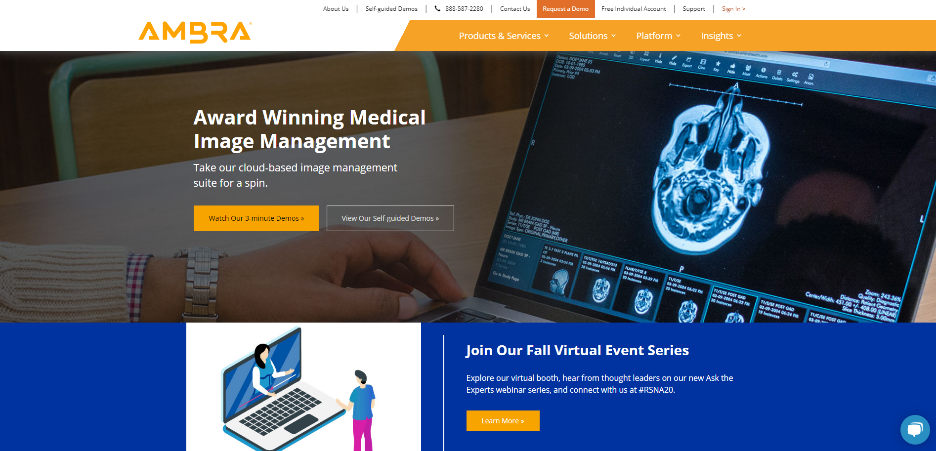 계속해서 기업을 살펴보면 암브라헬스는 실용적이고 높은 수준의 관리를 요구하지 않는 클라우드 플랫폼을 보유하고 있습니다. 앞에서 언급한 병원, 생명공학 단체들이 이미 사용을 하고 있는 시스템이고 더 중요한 것은 환자들도 이미지 관리를 위해서 사용할 수 있다는 것입니다. 모두 제각기 다른 곳에 저장을 하는 것보다 나는 클라우드를 통해 만들어진 모든 이미지들을 통합하고 사용할 수 있다는 장점이 매우 매력적으로 보입니다. 환자 입장에서는 2차 소견을 받기 위해 다른 병원을 가더라도 그 병원이 암브라 헬스 시스템을 이미 사용하고 있다면 어려움 없이 이전 데이터를 사용할 수 있게 됩니다. 암브라 헬스는 80억 장의 이미지를 보유하고 있고 이런 편리성 때문에 전 세계 50개국에서 사용하고 있는 시스템이라고 합니다. 데이터를 사용하여 헬스케어를 더욱 증진하는 데 사용하고 있다고 합니다. 홈페이지도 가보니 굉장히 깔끔하게 잘 만들어져 있습니다.