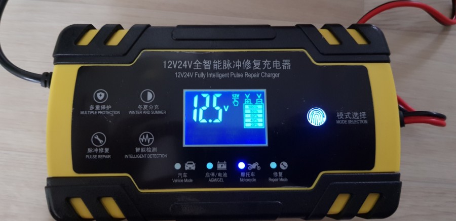 배터리와 충전기를 보니 애도 중국산 재도 중국산 중국산이 판친다... 그림에서처럼 투명 커비를 위로 밀어서 연결 부위를 노출시킨 다음 집게를 물리고 충전기를 보니 배터리 상태가 나오더군요. 이 충전기는 12V/24V 용으로 2~150 Ah 범위의 배터리를 충전할 수 있으니깐 모드만 바꿔주면 됩니다. 소전류에서는 자동차 모드 저 저류에서는 오토바이 모드로 충전을 진행해보았습니다.