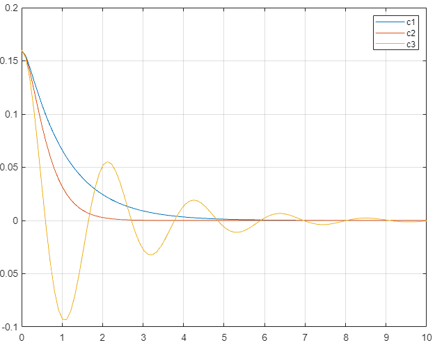 c=10 kg/sec일 때 복소수 근을 갖는다.