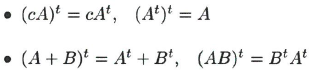 이다. 전치행렬 $A^t$의 $i$번째 행은 A의 $i$번째 열과 같다. 연산이 가능한 행렬 A,B에 대하여 다음의 성질들이 성립한다.