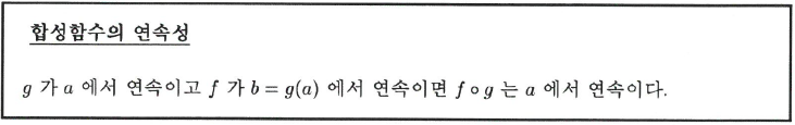 다시 말해서 $f\circ g$는 $a$에서 연속이다.