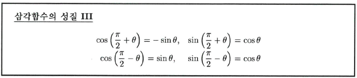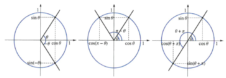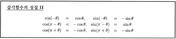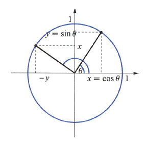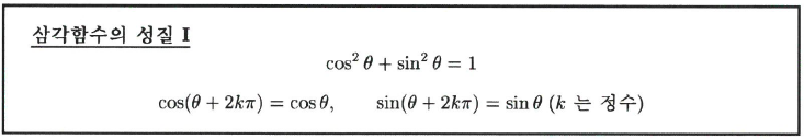 정의에 의하면 점 $(cos\theta, sin\theta)$ 는 모든 실수 $\theta$에 대하여 단위원 위에 있으므로 다음식이 성립한다.