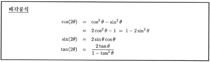 코사인에 대한 배각공식은 다음과 같이 바꾸어 쓸 수 있다.