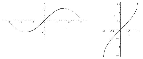 이렇게 정의된 역함수를 역사인함수(inverse sine function)라고 부르고