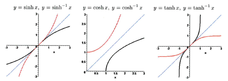 쌍곡사인함수와 쌍곡탄젠트함수는 일대일대응이므로 역함수가 존재한다. 쌍곡사인함수의 역함수와 쌍곡탄젠트함수의 역함수는