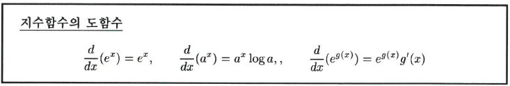 정의로부터 자연상수 $e$를 밑으로 갖는 지수함수 $f(x)=e^x$의 도함수는 자기 자신과 일치한다.